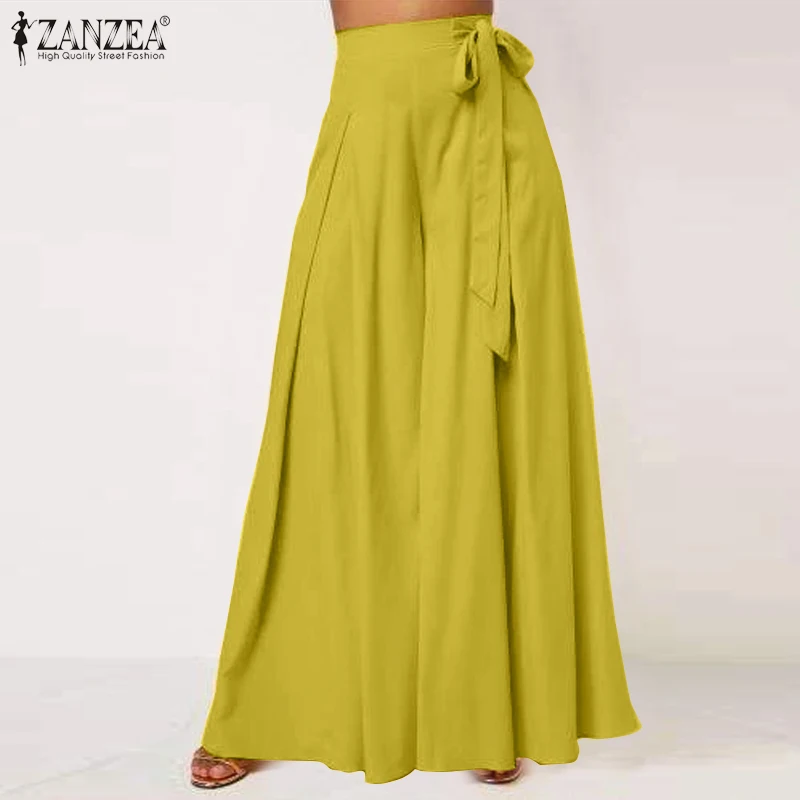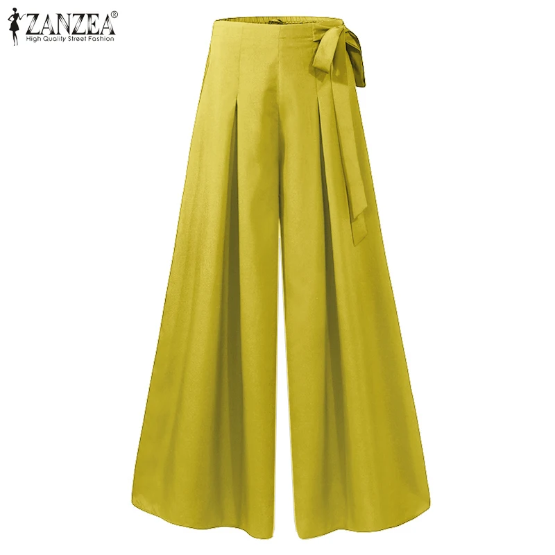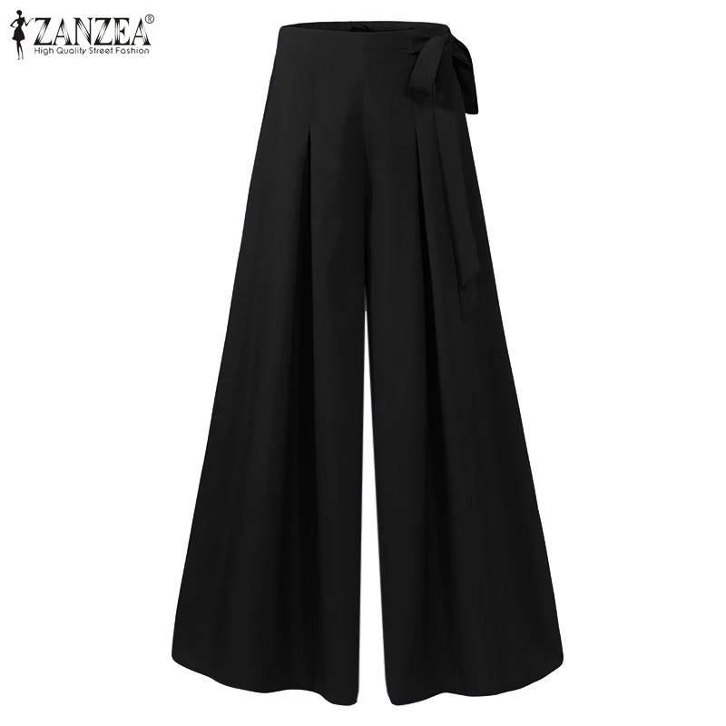 2025 Summer Wide Leg Pants ZANZEA Elegant Women High Waist Long Trousers Pleated Pantalon Casual Flare Pant Oversized Streetwear