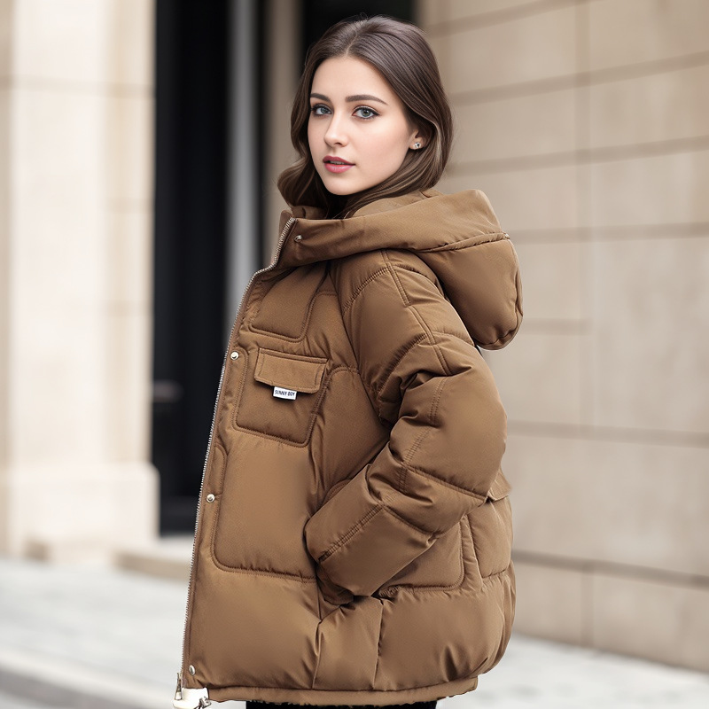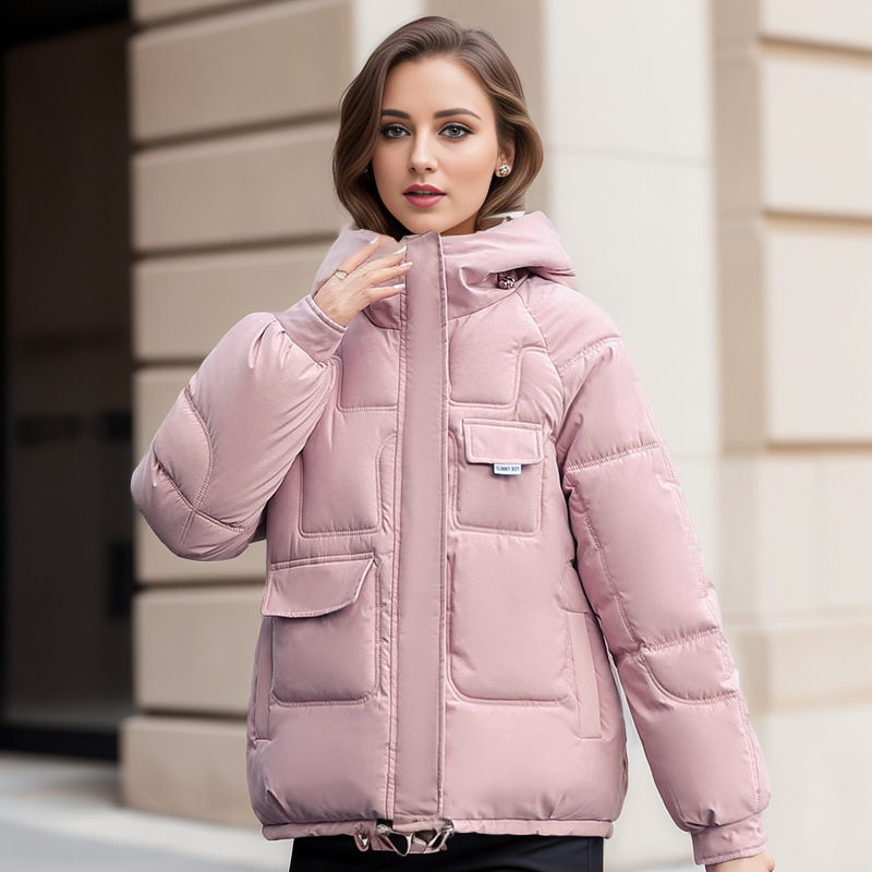 Women Full Sleeve Hooded Zipper Parkas Stand Collar Loose Drawstring Jackets Thick Warm Pockets Casual Coats Autumn Winter