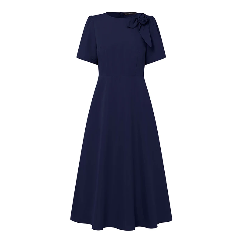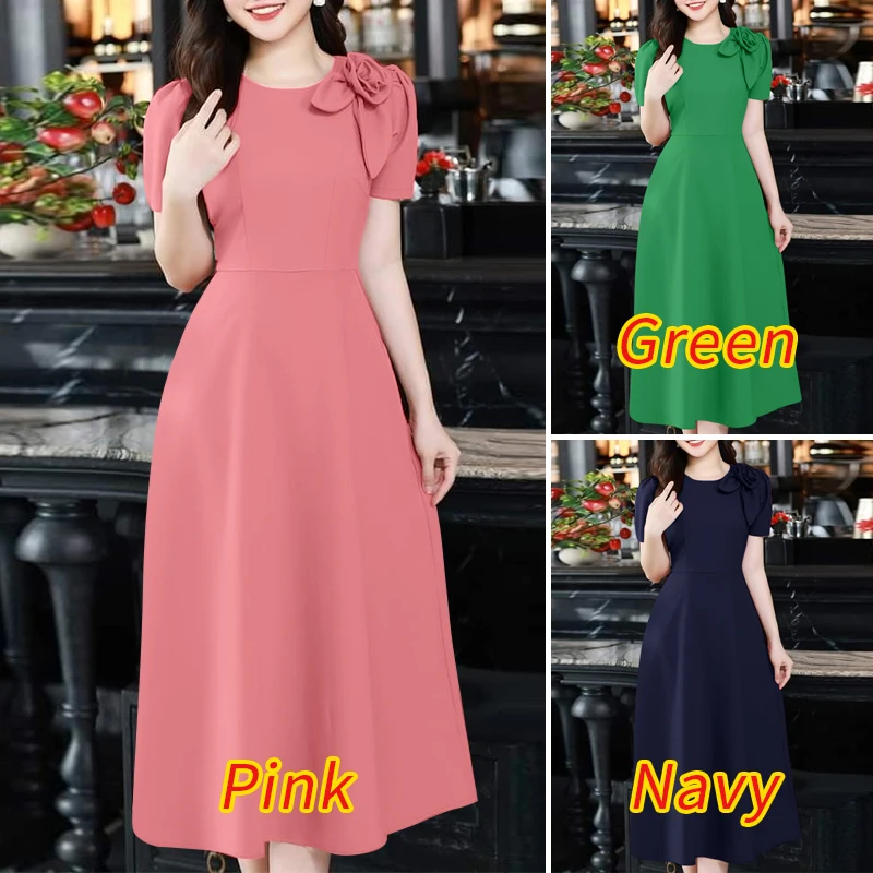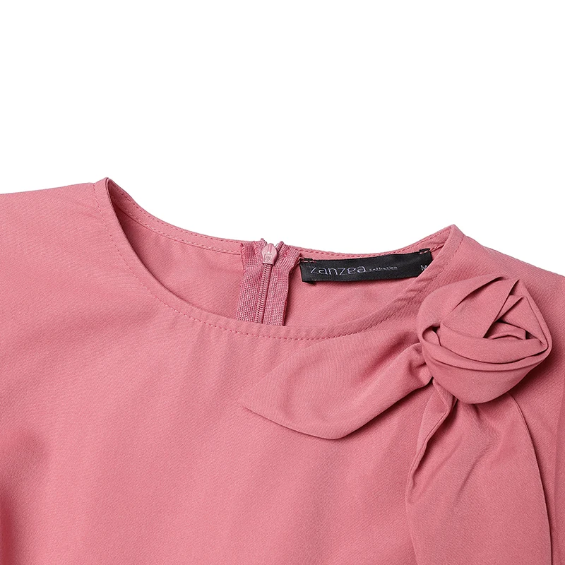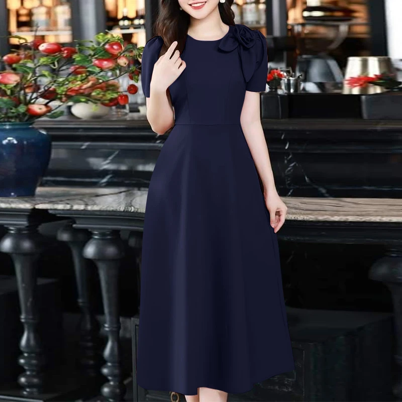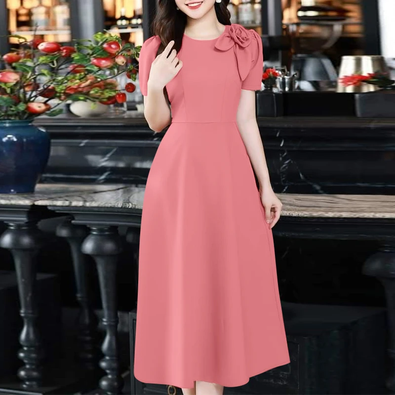 ZANZEA Elegant Women's Party Dresses 2025 Fashion Fabric Flower Short Sleeve O-Neck A-line Midi Robes Summer Fitted Waist Kleid