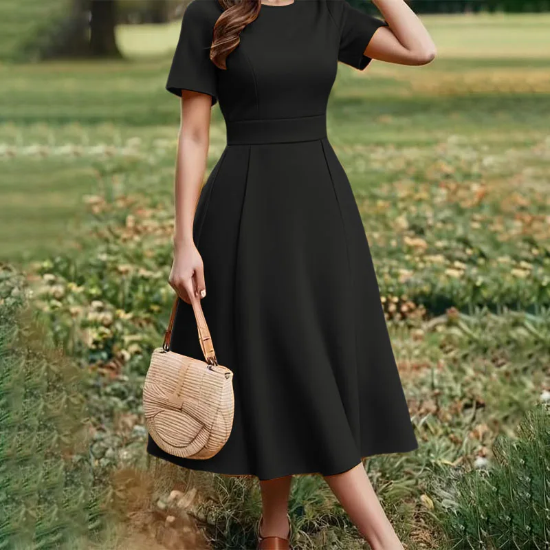ZANZEA Plus Size Dresses Elegant Party Women Summer Short Sleeve Solid Sundress Waisted Evening Long Vestidos Casual Robe 5XL